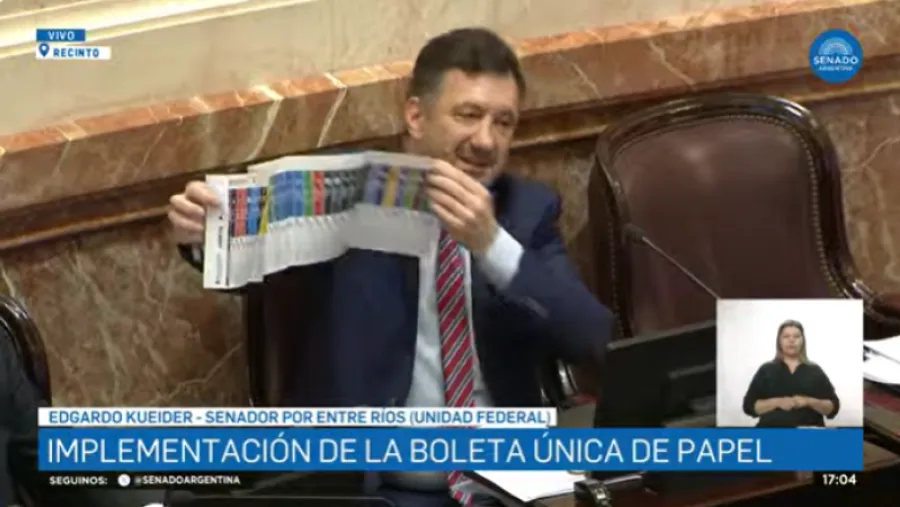 Kueider exhibió la boleta que se utiliza en Mendoza, y explicó por qué proponen ese diseño.