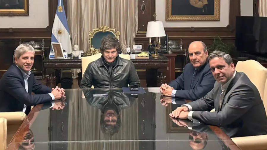 Luis Caputo, Javier Milei, Guillermo Francos y Lisandro Catalán, encargado del diálogo con gobernadores.