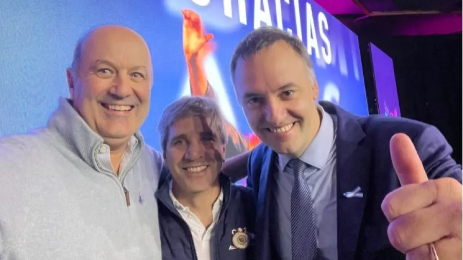El jefe de Gabinete, Manuel Adorni, junto a los ministros Luis Caputo y Federico Sturzenegger.