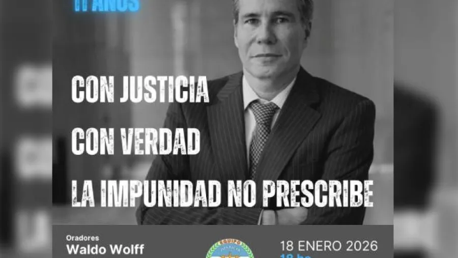El próximo 18 de enero, al cumplirse 11 años de la muerte del fiscal Alberto Nisman, se realizará en la Ciudad Autónoma de Buenos Aires una charla pública titulada “Con Justicia, con Verdad, la impunidad no prescribe”. La actividad, organizada por el Equipo Republicano, tendrá lugar desde las 18 en la intersección de avenida Belgrano y Alicia Moreau de Justo.