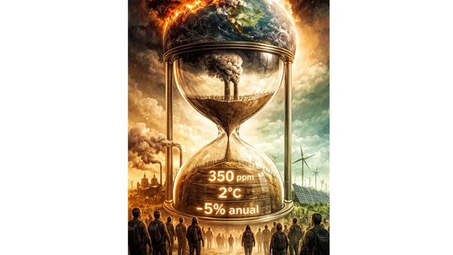 Cambio climático, la secuencia que condiciona el futuro de la humanidad: 350 ppm → 2 °C → -5 % anual
