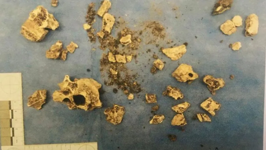 Allí se encontraron una vértebra y unos treinta trozos de huesos quebrados. Los primeros análisis no pudieron determinar que se trataran de restos humanos.