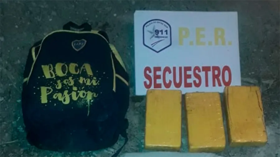 En tanto, en la mochila hallaron tres paquetes con tres kilos 156 gramos de cocaína, 420 pesos argentinos y 100 dólares.
