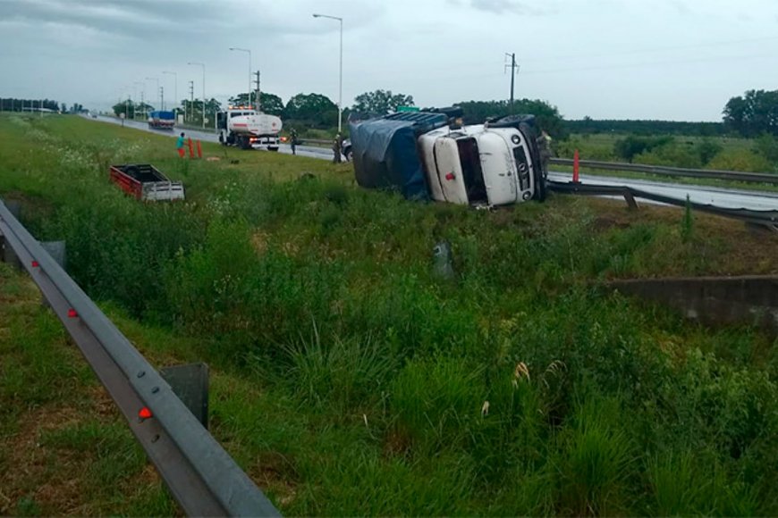 Los cuatro ocupantes de un camión resultaron con lesiones tras el vuelco del rodado. El conductor del vehículo perdió el control del mismo y volcó en el kilómetro 333 de la Autovía 'José Gervasio Artigas', cerca del acceso norte de Chajarí por avenida 25 de Mayo, este lunes.