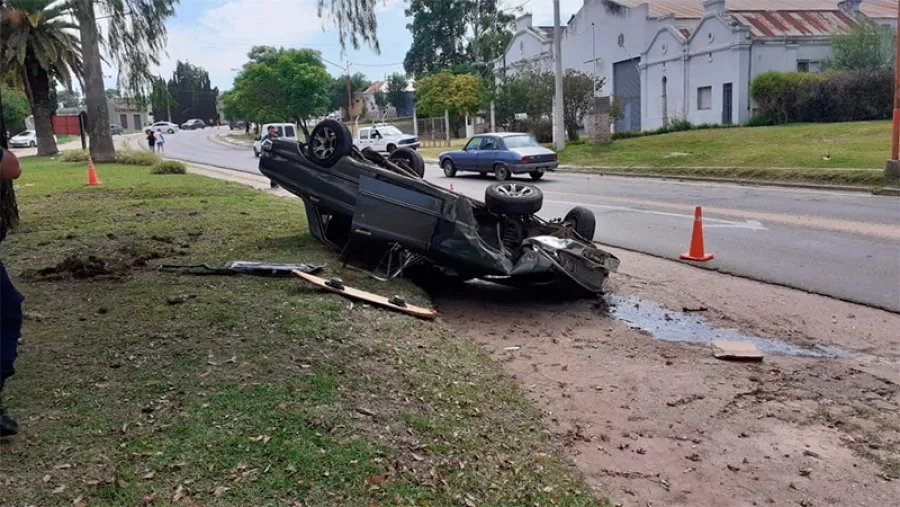 Desde la Policía de La Paz informaron que aproximadamente a las 10 del domingo, un auto Ford Falcon en el que viajaban seis ocupantes, volcó en la rotonda de la Plaza Varisco y tres personas resultaron con lesiones graves.