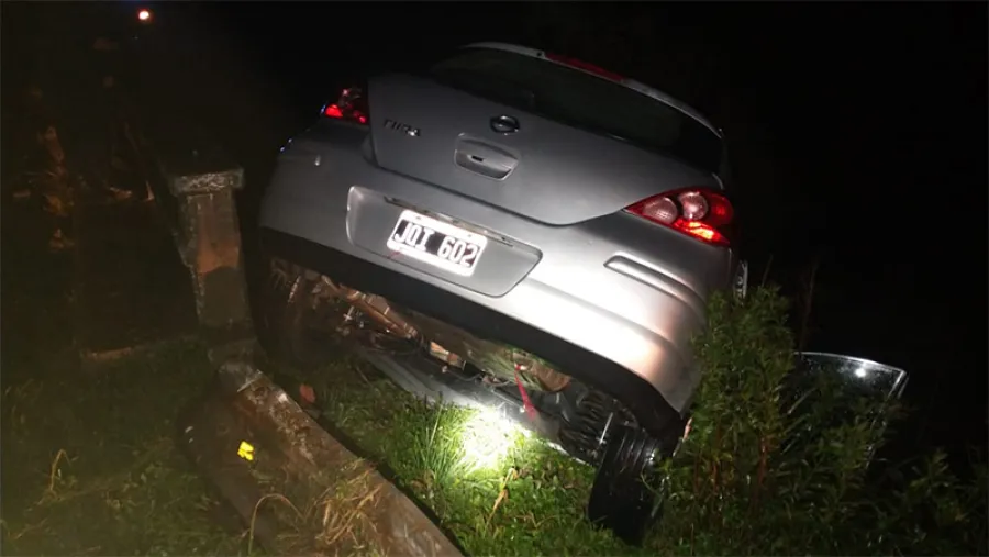 Un auto despistó y chocó contra la estructura de una alcantarilla