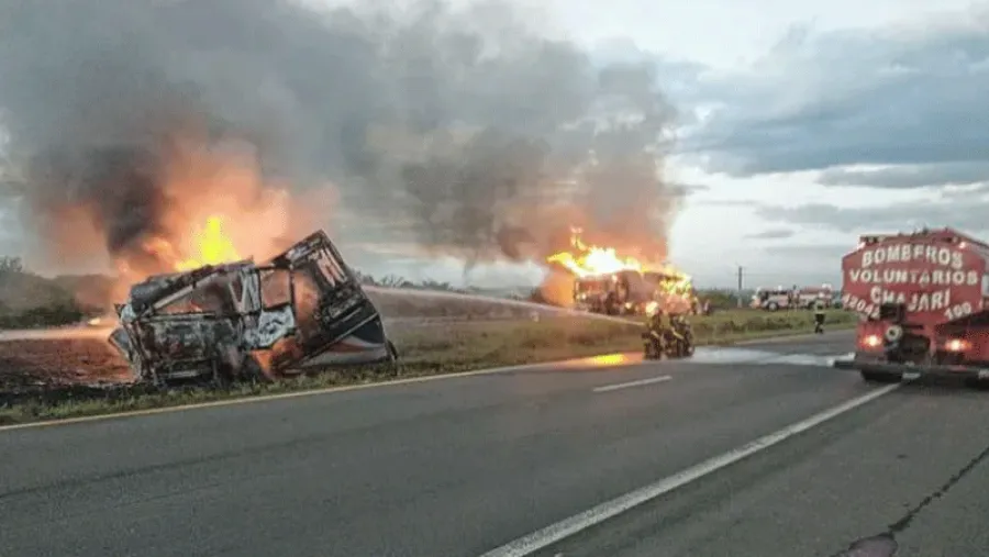 En la tarde de este jueves, se produjo un choque en cadena y posterior incendio en la Autovía José Gervasio Artigas, a unos 700 metros de Paso Cerrito, en el carril de norte a sur, en Chajarí.