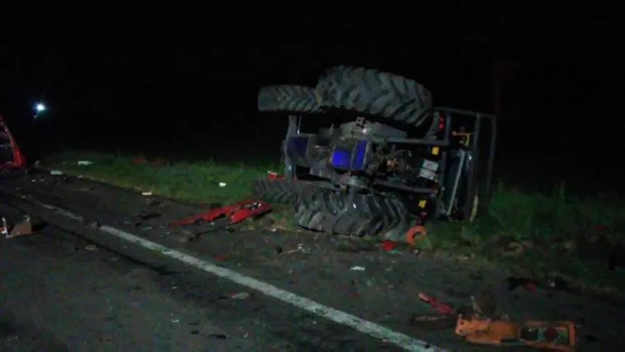 El siniestro fue protagonizado por un tractor Valtra BH 145, con remolque grúa marca Guerra conducido por un hombre de 45 años, el cual colisionó con un camión marca Iveco color rojo, conducido por un ciudadano de 30 años y su acompañante un joven de 23 años, ambos con domicilio en Misiones.