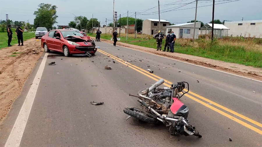 Minutos antes de las 9, una moto Guerrero 150 cc., chocó de manera frontal con un automóvil Peugeot 207. Como consecuencia del fuerte impacto, uno de los jóvenes que se trasladaba en el rodado de menor porte, falleció en el lugar del accidente, confirmó Infopalmares.