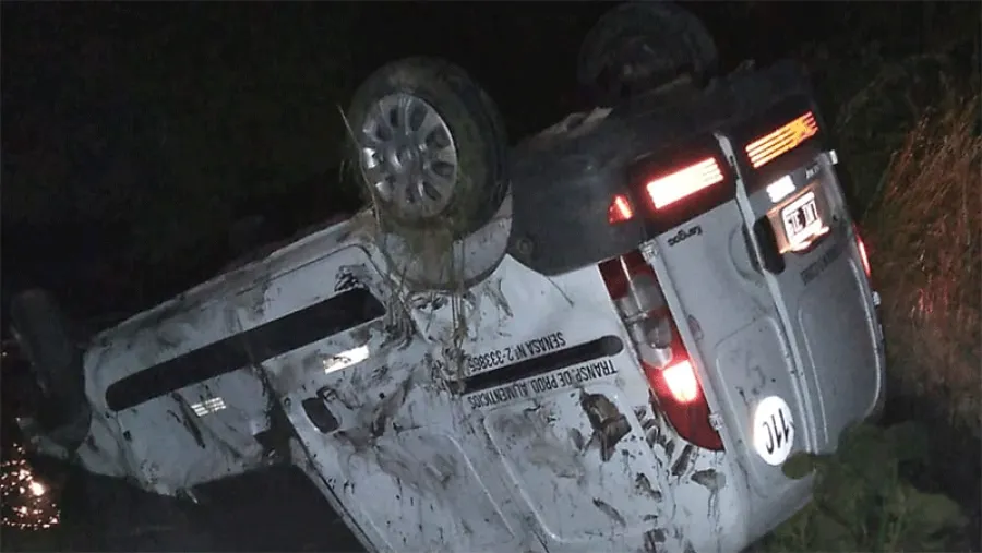 Luego del impacto la Kangoo volcó y terminó en la banquina sobre un alcantarillado.