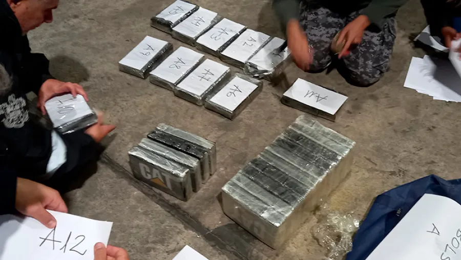 En efecto, al abrirlo encontraron tres bolsos de tela azul que en su interior contenían 73 paquetes cubiertos con papel film, con la inscripción de la marca “CAT” —eran 78,700 kg de cocaína, cuyo valor estimado asciende a USD 1.182.000. La Dirección General de Aduanas presentó la debida denuncia e intervinó el Juzgado Federal de Primera Instancia de Campana, a cargo del Dr. Adrián González Charvay.