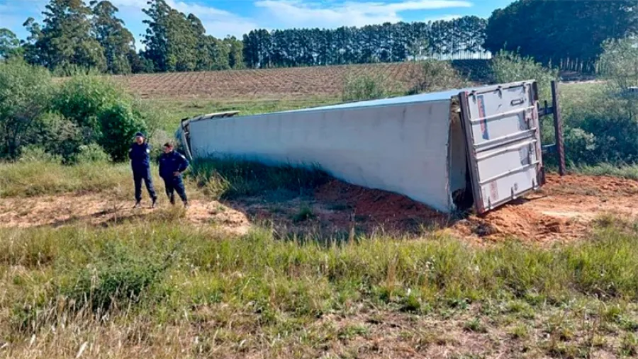 De acuerdo a lo informado, el conductor de un camión marca Volvo, con patente brasilera, que trasportaba productos cárnicos refrigerados, perdió el control del rodado y se fue hacia la banquina que tiene un desnivel, lo cual habría provocado que el camión termine volcando.