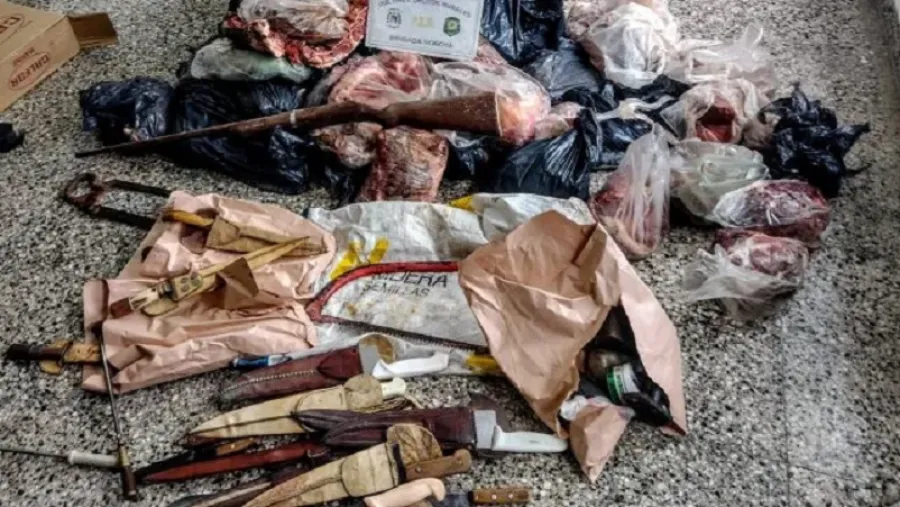 Mientras tanto, en el otro procedimiento realizado se procedió al secuestro de una sierra carnicera y aproximadamente 60 kilos de cortes bovinos con restos de tierra y pasto.