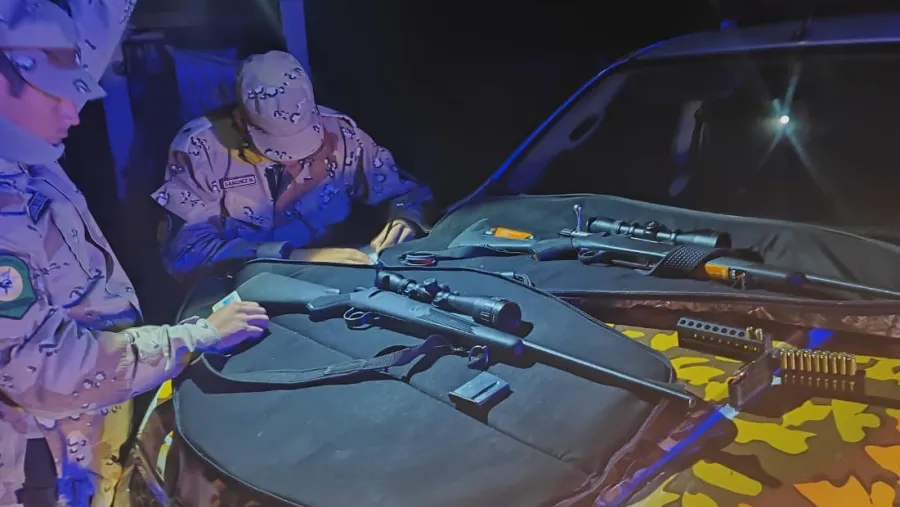 Los ciudadanos iban en una Toyota Hilux y trasladaban dos armas de fuego cargadas. Según el parte de prensa se trataba de “dos (02) fusiles calibre .223, con cargadores colocados y miras telescópicas; y 24 cartuchos del mismo calibre”. “Estas personas carecían de Credencial de Legítimo Usuario de Armas de Fuego y Credencial Tenencia. Por lo tanto estaban infringiendo el Artículo 189 bis del Código Penal Argentino, por el delito de Tenencia Ilegal de Arma de fuego, tomo intervención la Fiscalía en turno, procediendo los uniformados con el secuestro de las armas y cartuchería”.