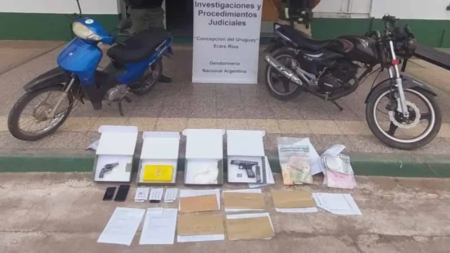 En los mismos, los gendarmes con apoyo de la Unidad de Investigaciones de Delitos Complejos y Procedimientos Judiciales "Cinturón Sur" hallaron envoltorios con cocaína, marihuana, 936.286 pesos, revólver calibre .22, una pistola cal 9 mm, 26 municiones, 2 cuadernos, 12 dispositivos móviles, balanzas de precisión, una moto y demás elementos de interés para la causa.