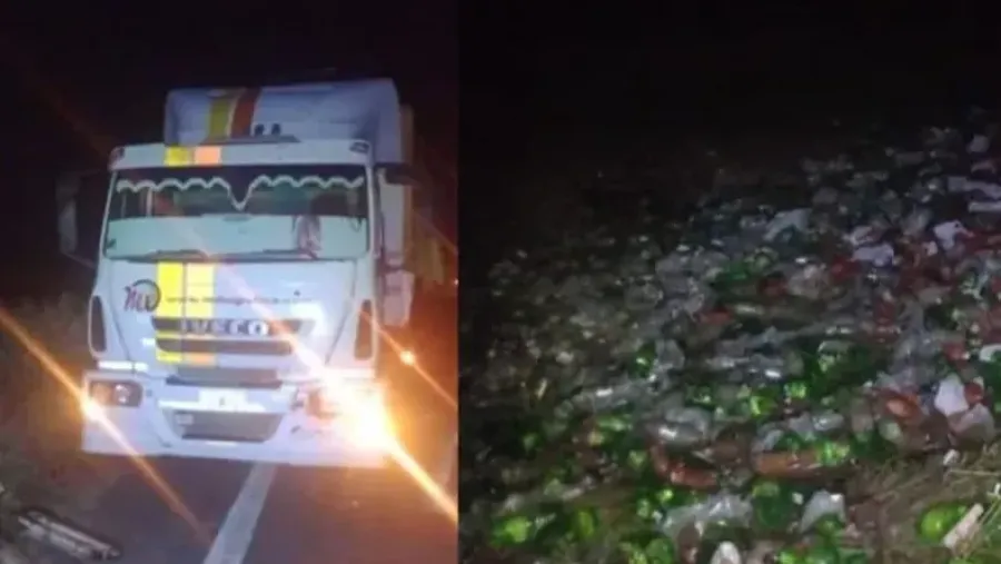 Según informó la Jefatura Departamental Concordia, funcionarios de la comisaría de Calabacilla acudieron al lugar donde encontraron en la banquina a un camión Iveco con su carga de gaseosa esparcida en la cinta asfáltica.