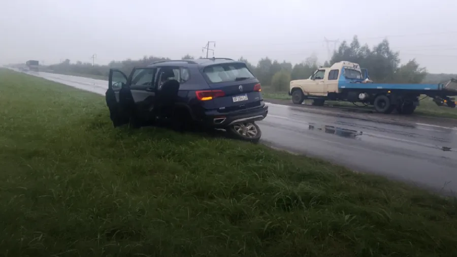 Según informó el Puesto de Control Vial Zárate Brazo Largo, el impacto fue tal que uno de los neumáticos se desprendió, dejando el automóvil inmovilizado en el acto.