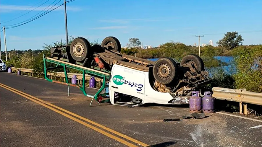 Un accidente de tránsito ocurrió este lunes en el puente Alvear, en uno de los accesos a Concordia. El siniestro vial, involucró a un camioneta de carga Toyota, transportando garrafas y perteneciente a la empresa Extra Gas.