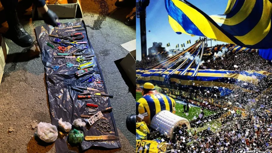 Un contingente de cientos de integrantes de la barra del Club Rosario Central que viajaban en 26 colectivos hacia Uruguay, fueron controlados por policías en Entre Ríos y en la requisa les hallaron armas blancas y hasta había un prófugo de la Justicia Federal.