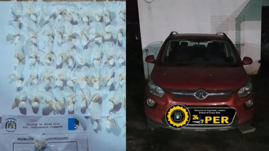 Los policías irradiaron lo sucedido y en conjunto personal de la comisaría de Valle María implementaron un operativo cerrojo. Así lograron detener la marcha del vehículo. Pero al verse acorralado, el acompañante arrojó por la ventana un envoltorio de nailon.