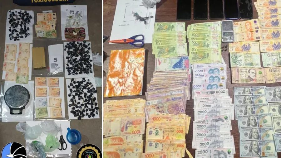 En Villa Elisa, Departamento Colón, incautaron en un allanamiento una escasa cantidad de cocaína (1,8 gramos), un frasco de vidrio con cogollos de marihuana, 336.900 pesos, 1.000 dólares, cinco celulares, una balanza con restos ínfimos de cocaína, cuatro cartuchos calibre 32 y un cuaderno con anotaciones. No hubo detenidos e identificaron para la causa a siete personas.