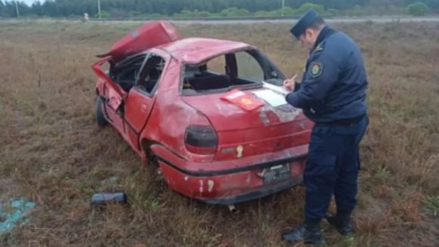 A la altura del kilómetro 243 de la autovía, el chofer perdió el control del rodado, despistó y volcó, dando varios tumbos, y quedó debajo del cantero central.