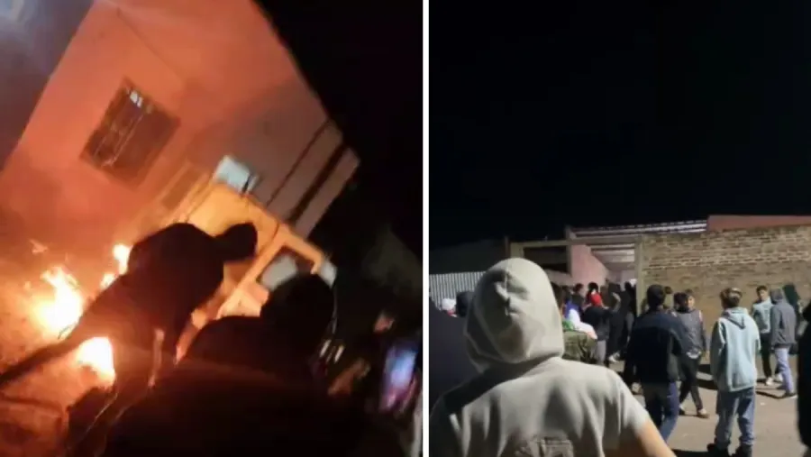 Luego, apedrearon la vivienda y prendieron fuego una moto y un auto.