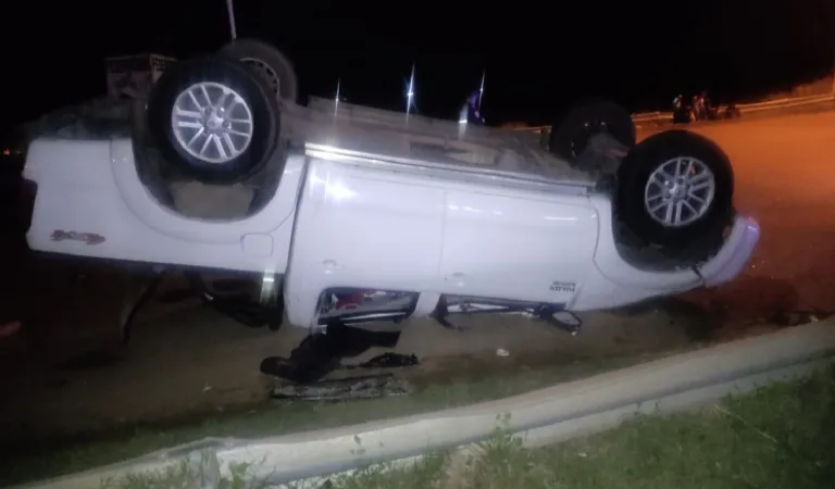 Por razones que se tratan de establecer, la conductora perdió el control del vehículo y se fue a la banquina, lo que provocó un brusco volanteo que hizo volcar la camioneta que terminó sobre la cinta asfáltica con sus cuatro ruedas hacia arriba.