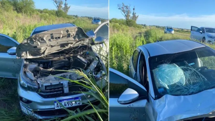 El auto sufrió importantes daños materiales en la parte delantera y el parabrisas a causa de que se le atravesó el ciervo que no pudo esquivar y lo terminó chocando.
