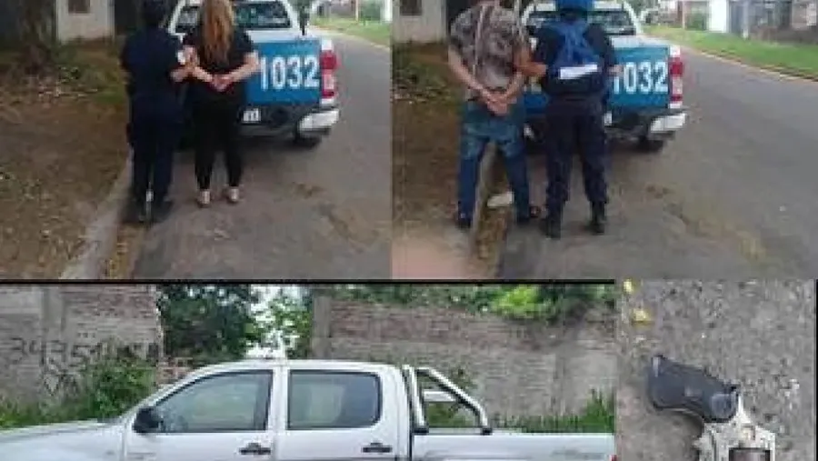 El incidente ocurrió este sábado a la mañana. El primer hecho de una serie de acontecimientos fue un siniestro vial ocurrido en el centro de Paraná. Allí, una Toyota Hilux colisionó con una moto y huyó. Tras una persecución fue detenida a varias cuadras de distancia de aquel lugar. La pareja que se trasladaba en la camioneta se resistió al procedimiento y al palpado se halló un revólver en poder de la mujer y otra arma en la guantera, presuntamente de juguete.