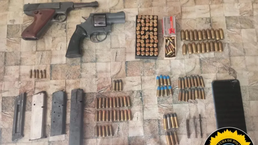 En cuanto a los efectos secuestrados, se trata de dos armas de fuego calibres .22 y .32, almacenes cargadores y más de 100 cartuchos de diversos calibres. Se inició una causa en la Fiscalía por el delito de Tenencia Ilegal de Arma de Fuego.
