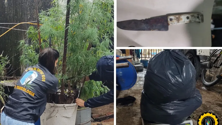 Además, durante una inspección más exhaustiva, se descubrió una plantación significativa de marihuana en el fondo del domicilio. En coordinación con la Dirección General de Drogas Peligrosas, se procedió al secuestro de 17 plantas de marihuana y dos plantines.
