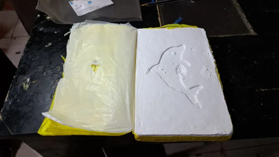 Se dio intervención al personal de Drogas Peligrosas, que al abrir el nailon amarillo encontró el sello de un delfín. El pesaje arrojó que se trataba de 1,200 kilogramos de cocaína.