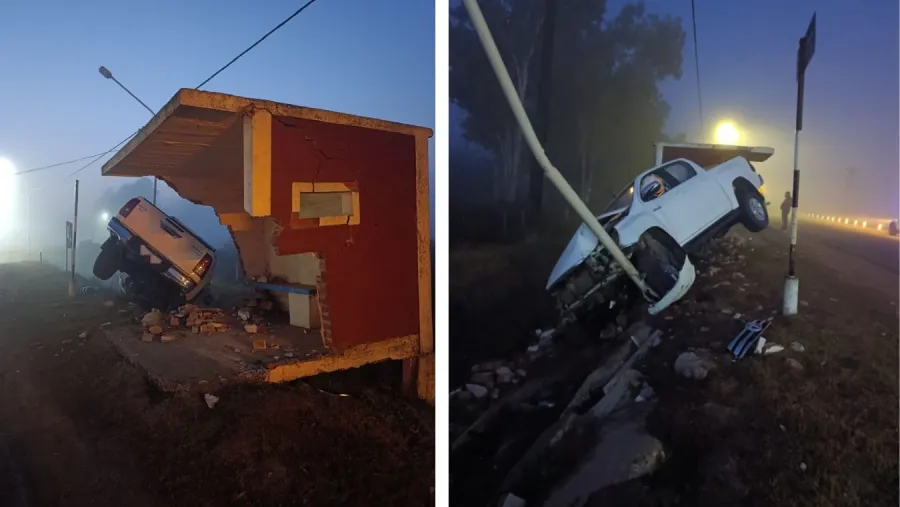 Allí se produjo el despiste y posterior colisión de una camioneta Toyota Hilux contra una garita de material y un poste de luminaria pública. Se registraron solamente daños materiales, sin lesionados, confirmó la Policía.