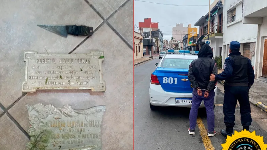 Según informaron fuentes policiales, el director del cementerio se comunicó con la Comisaría Primera para denunciar que uno de sus empleados habría sustraído placas del predio. La información fue corroborada por un funcionario que se encontraba custodiando el panteón policial y lo observó en actitud sospechosa.