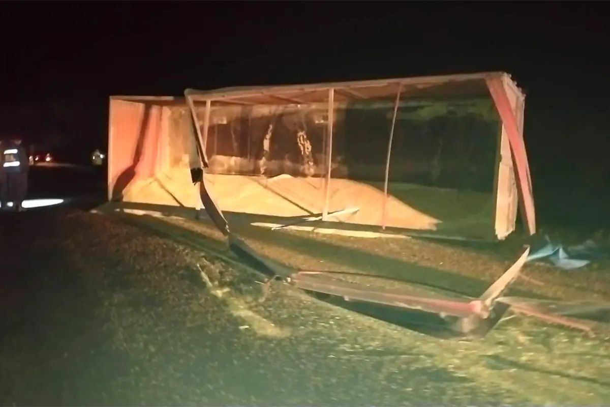 Fuentes policiales confirmaron que el camión Mercedes Benz remolcaba un acoplado que transportaba granos de cereales en sentido Diamante-Victoria cuando, por causas a determinar, al rodar por fuera de la calzada, se produjo la desestabilización y vuelco del rodado. Como consecuencia del accidente, la carga quedó esparcida sobre la ruta y la estructura metálica obstruyó el paso vehicular sobre la ruta.