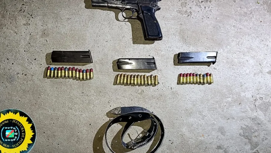 En el palpado le encontraron un arma de fuego y tres cargadores. Al identificarlo, se supo que tiene 15 años por lo que intervino personal de la División Minoridad. También fue al lugar personal de Balística de la Policía Científica, quien corroboró que se trataba de una pistola calibre 9 milímetros marca FM Hi Power, con 12 cartuchos, mientras que en los otros dos cargadores tenía 23 balas más del mismo calibre.