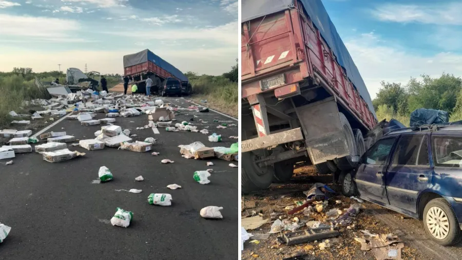 Acerca de las características del siniestro, lo que hasta el momento se pudo confirmar es que se trató de un choque fronto lateral entre los dos camiones ("casi de refilón", describió un testigo). Uno de los camiones iba de sur a norte y transportaba pollos de la empresa Noelma desde San José con destino a La Paz, mientras que el otro es un camión cerealero que iba en sentido contrario. El chofer del camión con pollos es el fallecido; el otro conductor resultó con lesiones leves.