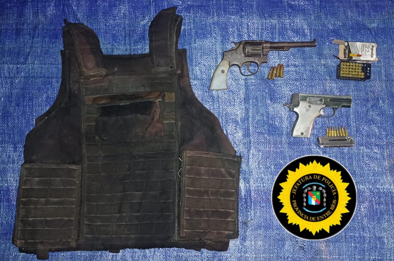 El sábado pasado, efectivos de la División Robos y Hurtos recorrían la zona, en horas de la noche intentaron identificar a un hombre en la zona de Cortada T, cerca de la laguna que ya está seca, el sospechoso se fugó y tiró una mochila. Allí encontraron un revólver calibre .32, una pistola calibre .22, balas para ambas armas, y un chaleco táctico.