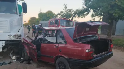 Tres personas hospitalizadas, luego que un auto chocara un camión estacionado Este domingo, cerca de las 6:45, un Fiat Duna colisionó en la localidad de Villa Clara un camión Mercedes Benz con acoplado, que estaba estacionado en la vía pública.