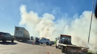 Un camión volcó en el acceso a Federación y se produjo un incendio Un camión volcó al tomar la rotonda y quedó sobre uno de sus laterales. En el lugar, sobre el pastizal y parte de lo que sería la carga, se produjo un incendio.