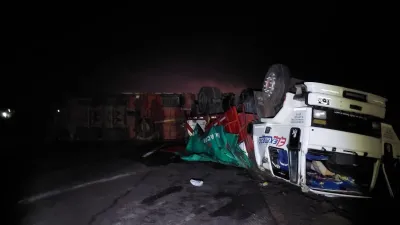 Un camión volcó en la ruta 12 tras esquivar un animal, en Gobernador Mansilla