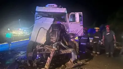 Un hombre resultó herido en un impresionante choque de camiones sobre la ruta nacional 14 Un grave accidente ocurrió en la noche del miércoles sobre la ruta nacional 14, a la altura del kilómetro 54, donde colisionaron dos camiones de gran porte. El conductor de uno de ellos fue trasladado al hospital.