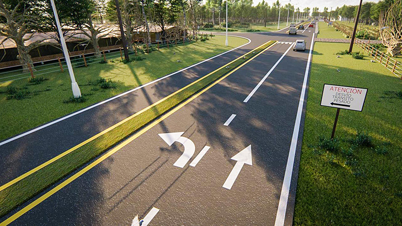 Al llegar a Villa Elisa, en coincidencia con el comienzo del Boulevard (Intersección con calle Nº2), se plantea un sistema de colectoras a ambos lados de la ruta, con el propósito de derivar el tránsito local y sus accesos hacia el sector urbanizado, modificando la actual intersección con la finalización del proyecto que nos ocupa. Esta situación deja abierta la posibilidad de considerar a futuro una conexión que permita vincular la obra con la Ruta Nacional N°130, con el objetivo de derivar a futuro, el tránsito pesado por vías alternativas.