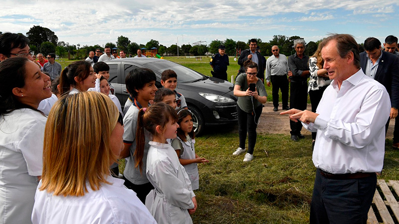 Acompañaron al gobernador durante la actividad, que también incluyó una recorrida por la escuela Nº5 Ayacucho, el intendente de Nogoyá, Rafael Cavagna; el diputado provincial José Allende; y la senadora electa Flavia Mariana.