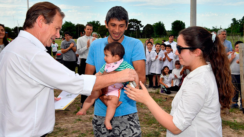 Por lo demás, felicitó a las diez familias que recibieron su vivienda: "Se hacen con un programa que decidimos financiarlo íntegramente con fondos provinciales, porque veíamos que se habían dejado de construir viviendas. Y era necesario retomar la construcción por dos motivos: primero, porque hay muchas familias que necesitan acceder al techo propio, y segundo, porque las viviendas generan empleo y trabajo en el sector de la construcción".