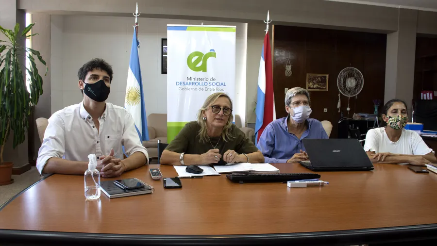 La ministra de Desarrollo Social, Marisa Paira, encabezó junto al secretario de Economía Social, Luis Precerutti,y el subsecretario de Fortalecimiento de las Organizaciones Sociales, Juan Arbitelli, el encuentro virtual con referentes de las siete cooperativas de trabajo entrerrianas, que recibieron recursos a través del programa de Financiamiento a Cooperativas de Trabajo y Grupos de Gestión Asociada que lleva adelante esa cartera.. Acompañaron la actividad el senador Jorge Maradey y la directora de Microcréditos, Hortencia Torres.