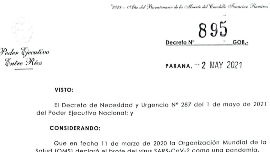 El Gobierno de Entre Ríos dispuso en el Decreto 895 del 2 de mayo de 2021 cuáles son las nuevas restricciones por el período de una semana en la provincia, a propósito de las medidas a nivel nacional.