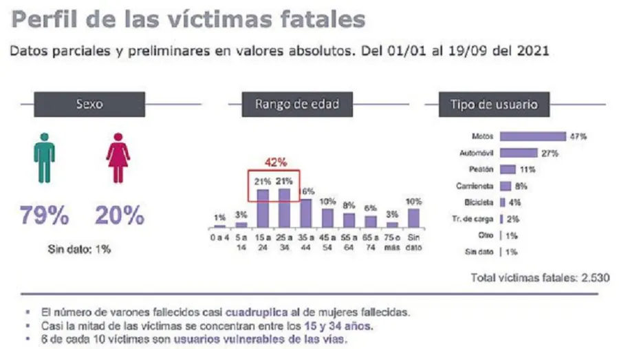 Además sostuvo que "en la provincia, cuatro de cada 10 fallecidos proviene de siniestros con la participación de motociclistas. Esto está asociado a otro lamentable suceso que es la falta de uso del casco, no respetar la velocidad y las señales de tránsito, entre otras faltas".