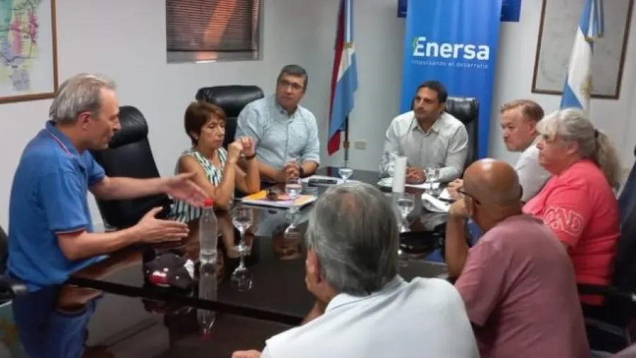 El presidente de Enersa, Ramiro Caminos, junto al director, Guillermo Gianello y el gerente General, Mario Quiroga, recibieron este martes a representantes de la Asamblea Popular de la ciudad de Paraná, quienes presentaron un petitorio atento su preocupación por la situación tarifaria.